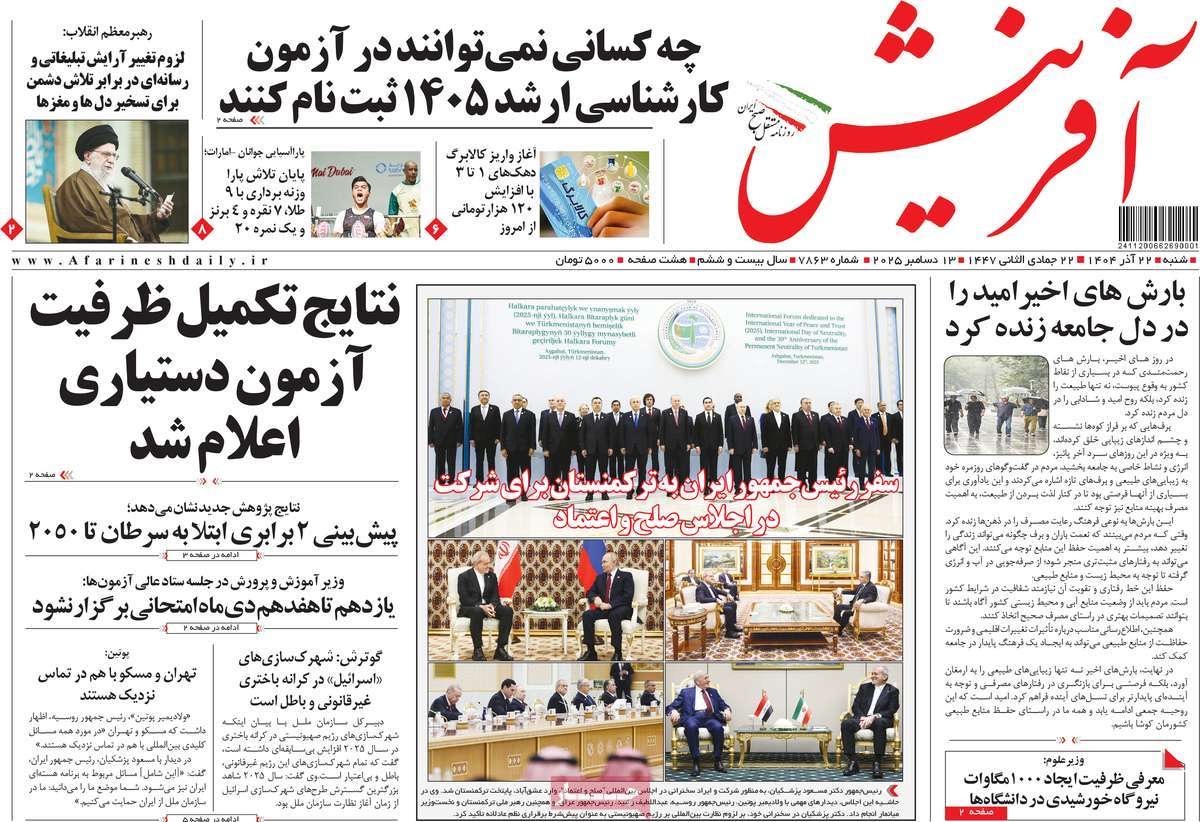 صفحه نخست روزنامههای شنبه ۲۲ آذر ۱۴۰۴