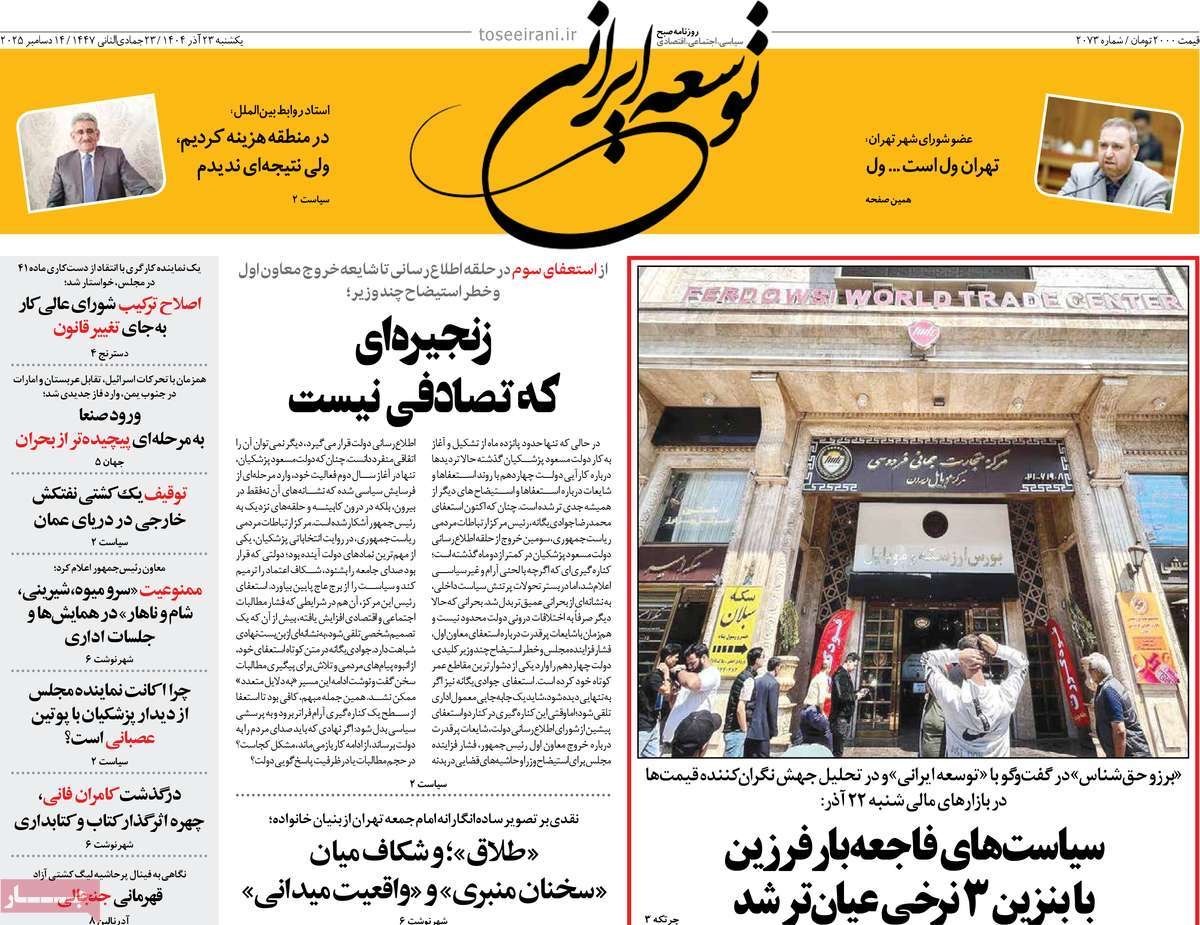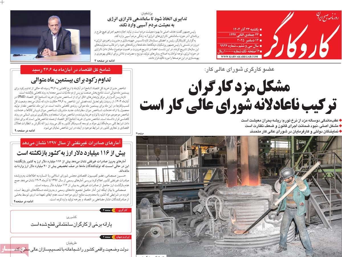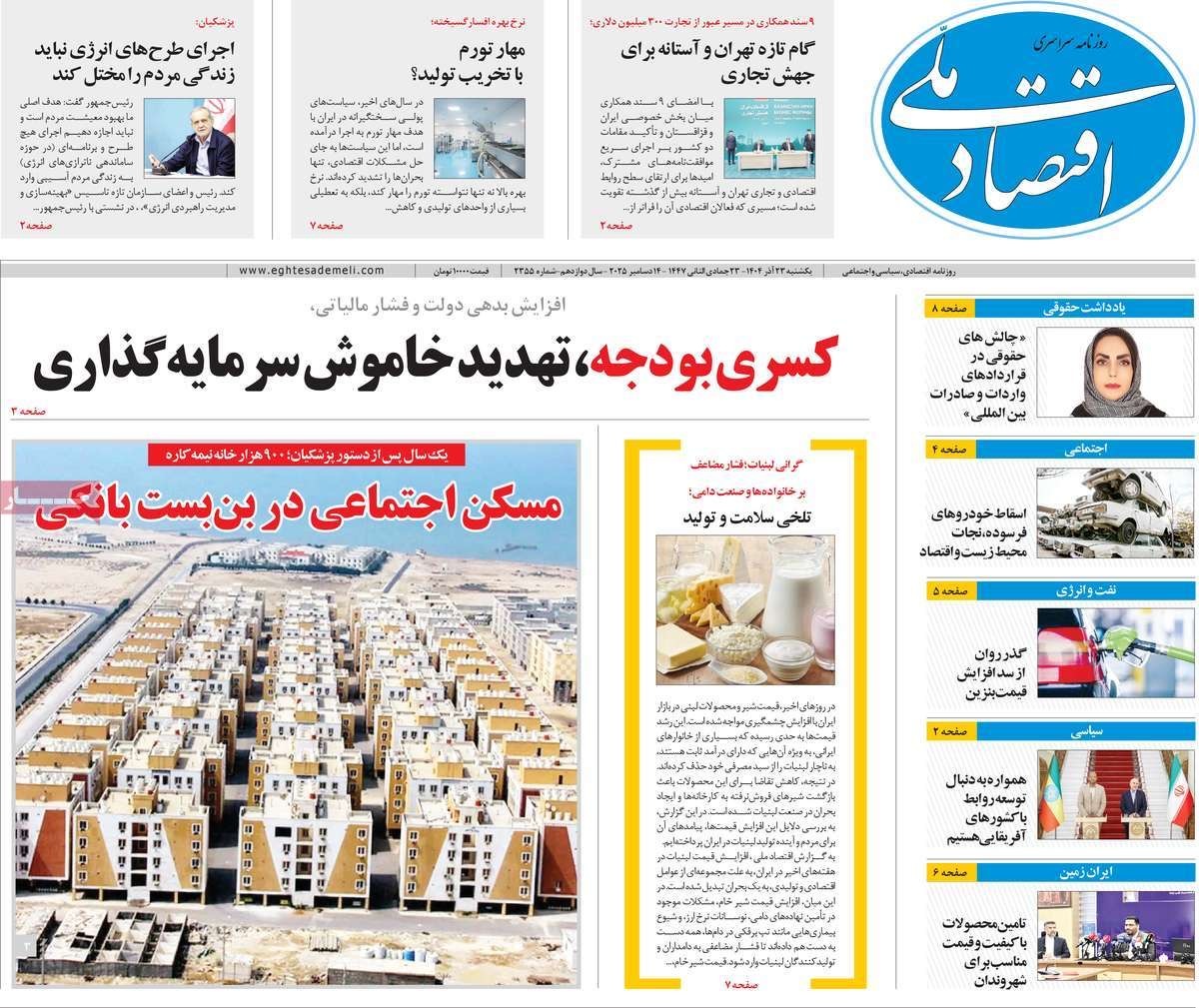 صفحه نخست روزنامههای یکشنبه ۲۳ آذر ۱۴۰۴