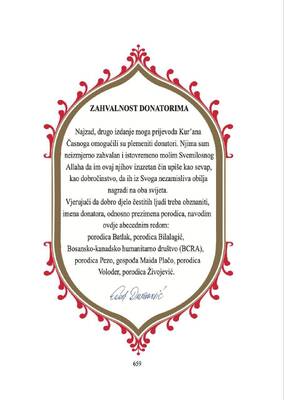 دوراکوویچ که از شخصیتهای نخبه و برجسته بوشنیاک(مسلمان) منطقه بالکان است، در پایان گفت: «امیدوارم با استقبال مثبتی روبرو شوم و خوشحالم که توانستم ویرایش دوم و اصلاحشده آن را قبل از رفتن به دنیای دیگر به پایان برسانم.»