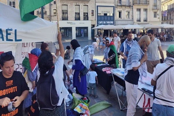 Même en plein coeur de l'été, le comité BDS ne lâche pas la pression. Une cinquantaine de sympathisants a participé au rassemblement organisé sur le parvis de l'opéra Comédie ce samedi 17 août en fin de journée. Le mot d'ordre est toujours le même : soutenir le peuple palestinien victime de la guerre qu'Israël livre au Hamas depuis les attentats du 7 octobre dernier.