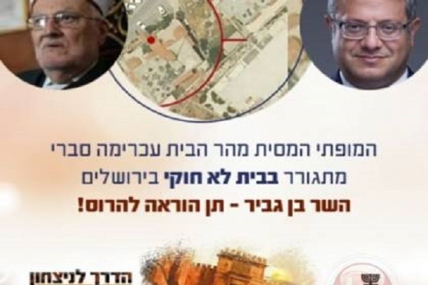 Selon l'agence palestinienne Ma'an, les colons ont demandé, à travers leurs différentes plateformes, au ministre de la Sécurité nationale, Itamar Ben Gvir, de démolir la maison de Sabri à Al-Sawwanah. Selon ce qui était indiqué dans la demande : « La maison est. pas d'autorisation, et il est temps de le démolir. Sabri continue de refuser l'entrée des Juifs dans le « Mont du Temple », selon leur expression et ce qu'ils ont publié. Ils ont également publié un plan de la maison de Cheikh Sabry.