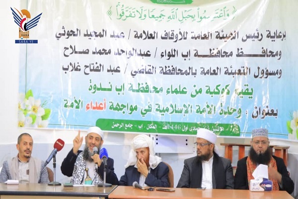 Le symposium, auquel ont participé le procureur en chef du parquet en appel du gouvernorat, le juge Abd al-Rahman al-Nuzaili, le responsable du département culturel de la république, Muhammad al-Madhari, le directeur adjoint du bureau des dotations du gouvernorat, Saddam al-Omeisi et un groupe d'universitaires ont souligné la nécessité d'éliminer les différences sectaires, sectaires et partisanes, qui servent les ennemis de la nation, et l'importance de l'unité sous la bannière de l'Islam.