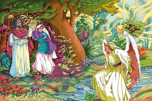 Após a criação, Adão e sua esposa viverão no paraíso pela vontade de Deus. Deus lhes diz para comerem abundantemente e alegremente de todas as bênçãos que quiserem ali, mas não se aproximem desta árvore. Se vocês chegar perto, vocês se tornarão um dos malfeitores: porque vos contareis entre os iníquos. Alcorão 2:35