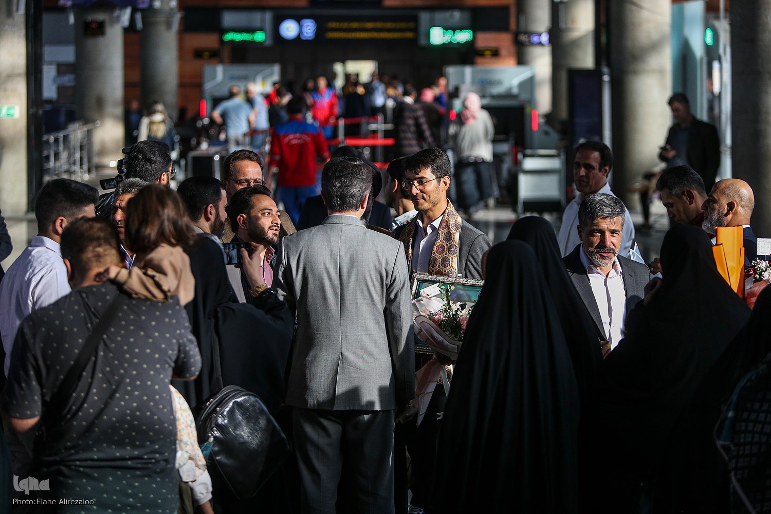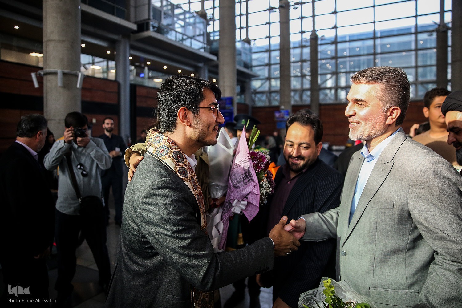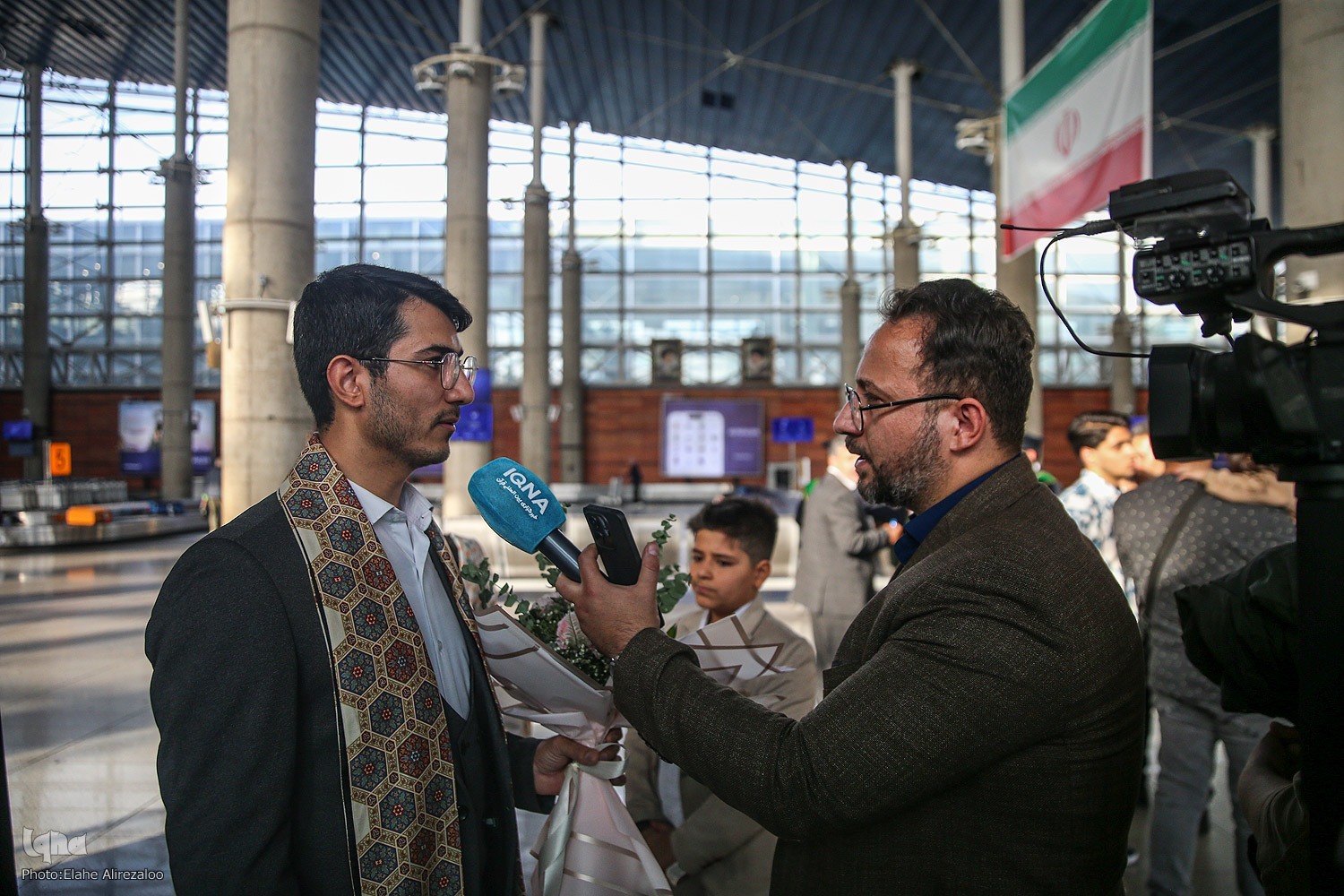 IQNA – Com buquês, abraços e mensagens de congratulações, recitadores iranianos do Alcorão e autoridades culturais receberam Es'haq Abdollahi no Aeroporto Imam Khomeini em 21 de outubro de 2025, após sua vitória em primeiro lugar na 23ª Competição Internacional de Alcorão de Moscou.