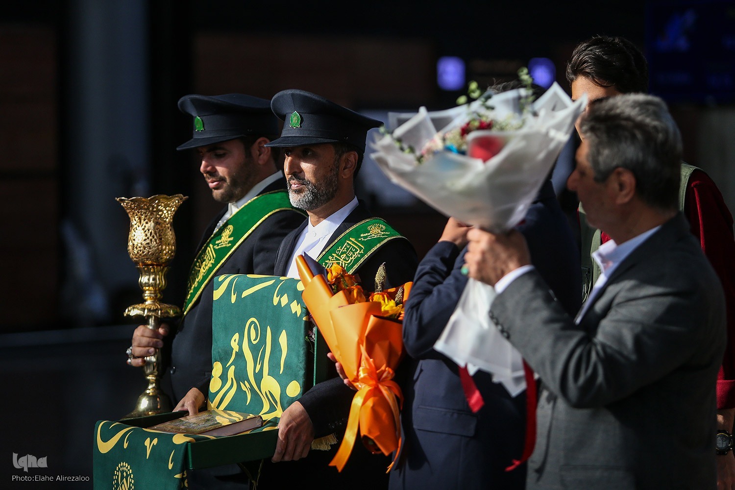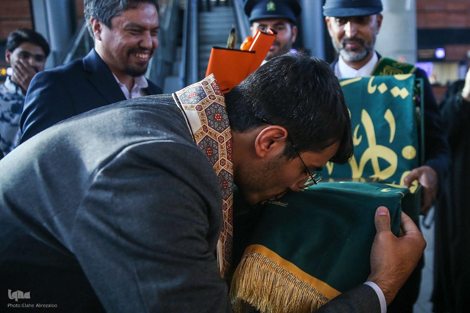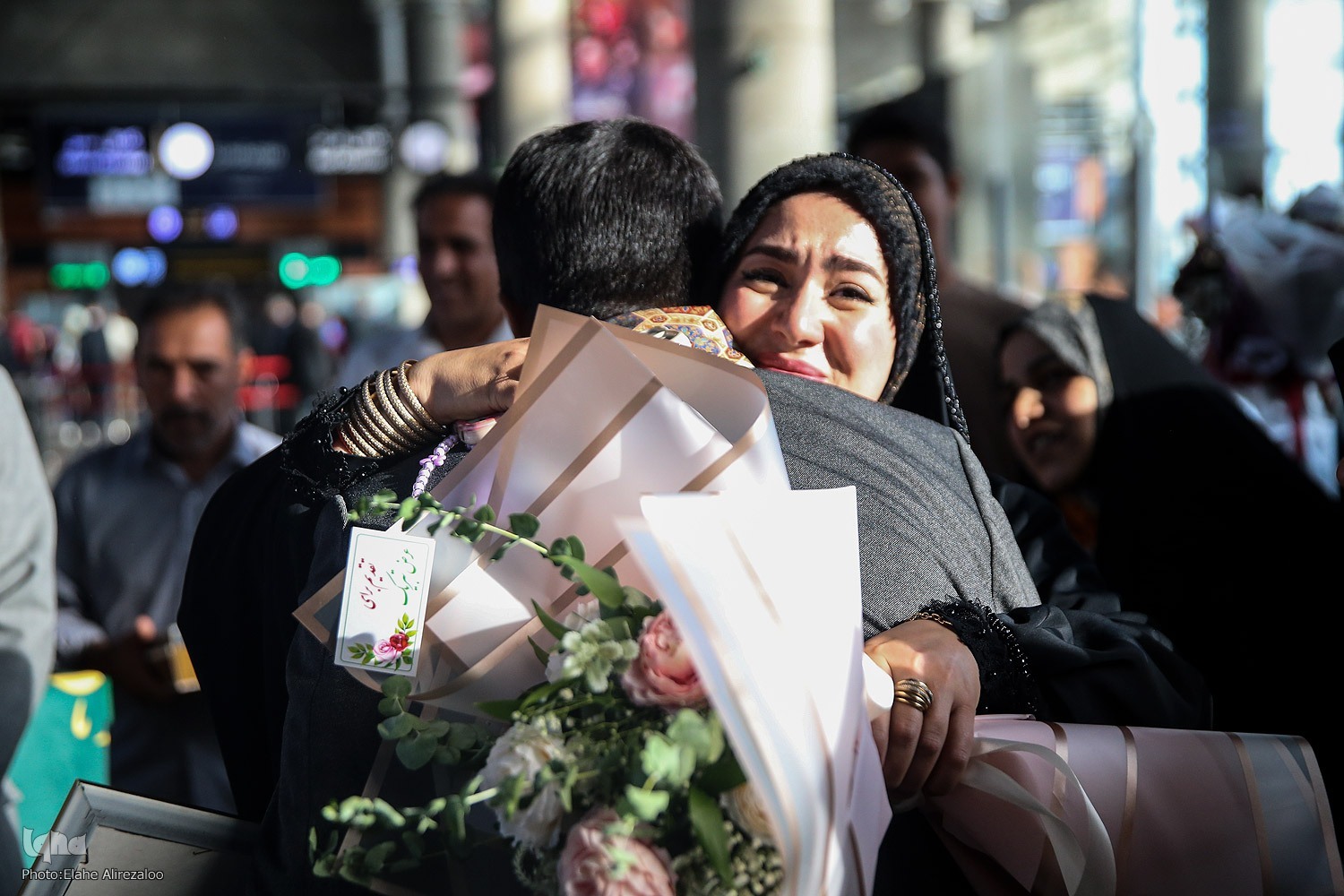 IQNA – Com buquês, abraços e mensagens de congratulações, recitadores iranianos do Alcorão e autoridades culturais receberam Es'haq Abdollahi no Aeroporto Imam Khomeini em 21 de outubro de 2025, após sua vitória em primeiro lugar na 23ª Competição Internacional de Alcorão de Moscou.